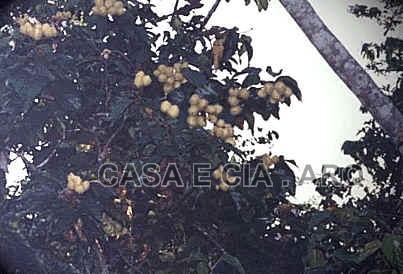 na metade superior do tronco. Produz um fruto, cujo mesocarpo amarelado