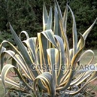 'Marginata' que tem as bordas amarelas. Com a idade emite uma inflorescência alta e ereta