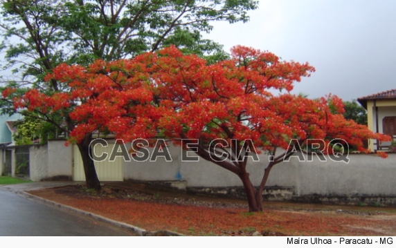 Abaixo, fotos de duas variedades: flamboyant vermelho e flamboyant