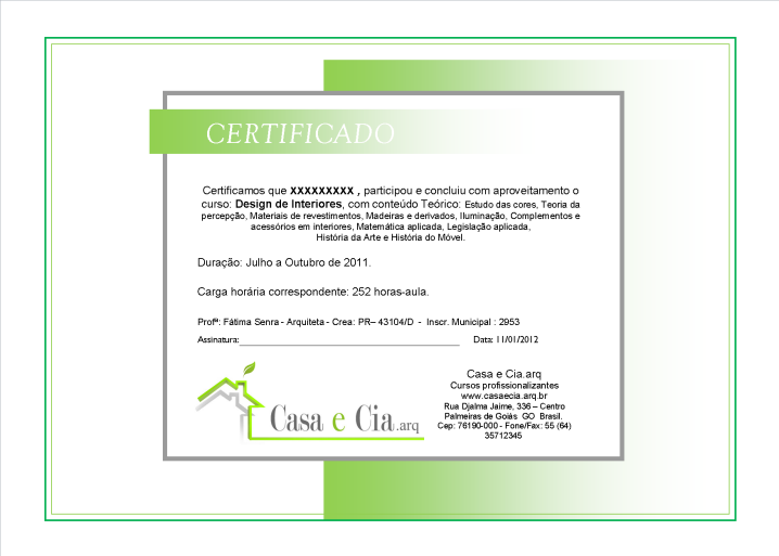 Modelo reduzido do Certificado de Conclusão do CURSO ON LINE:  DESIGN DE INTERIORES 1